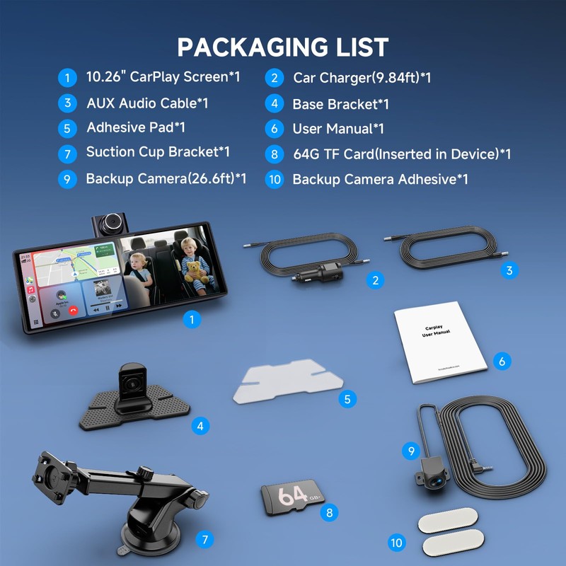 - Immersive 10.26" HD Touchscreen: Featuring a crystal-clear 10.26-inch 1080P touchscreen, our CarPlay display delivers sharp visuals for maps, apps, and media. Get real-time GPS navigation through apps like Google Maps and Waze, with traffic alerts and precise directions at your fingertips.