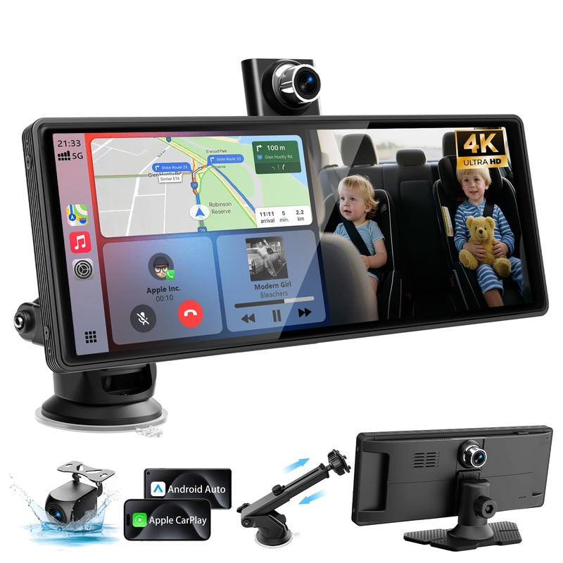 - Crystal-Clear 4K + 1080P Dual Camera System: Drive with confidence using the built-in 180° adjustable 4K front-facing dash cam(Note: It can only rotate from left to right.) and included 1080P backup camera. Capture every detail on the road, day or night, with advanced night vision, wide-angle coverage, and reliable DVR loop recording.