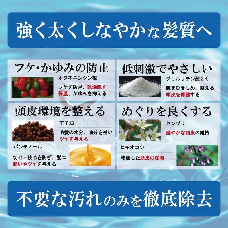 - Prevents dander and itchiness, hypoallergenic, and gentle to the scalp environment and improves the tightness. Thoroughly removes unnecessary stains, making your hair strong, thick and supple