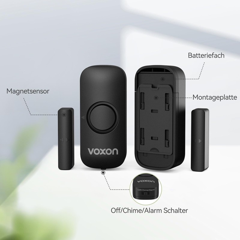 - [Multi-scenario applicable]: window alarm can also be used as a pool door alarm, garage door alarm or sliding door alarm. VOXON window alarm is the perfect solution for homes, caravans, offices, hotels, garages and more.