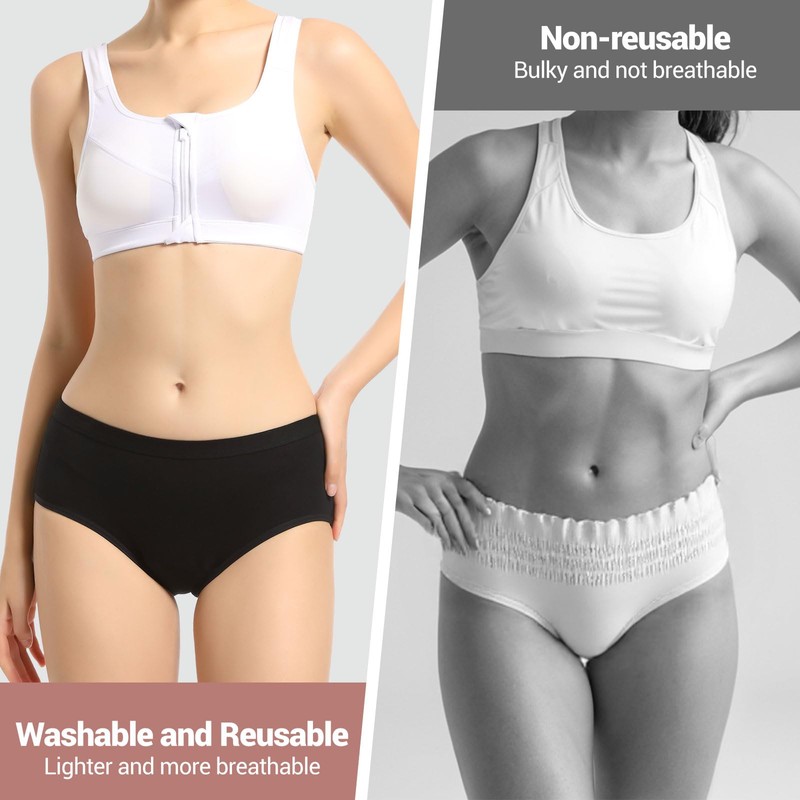 • Washing care: Reusable and washable leakproof underwear for women, can withstand multiple washes and maintain performance, hand or machine washable (our washable women’s incontinence panties will come with a mesh laundry bag)