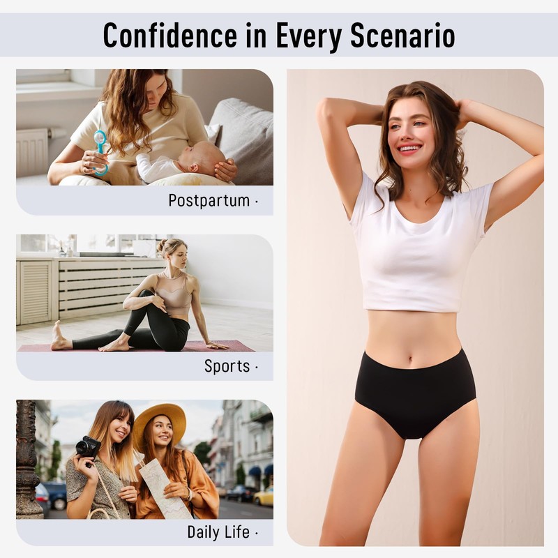 - Confidence in Every Scenario: Our leakproof underwear for women is versatile enough for daily bladder protection, light leaks, postpartum bleeding, or that special time of the month. Wherever life takes youhome, work, or workoutsthese washable women's incontinence panties help you stay confident