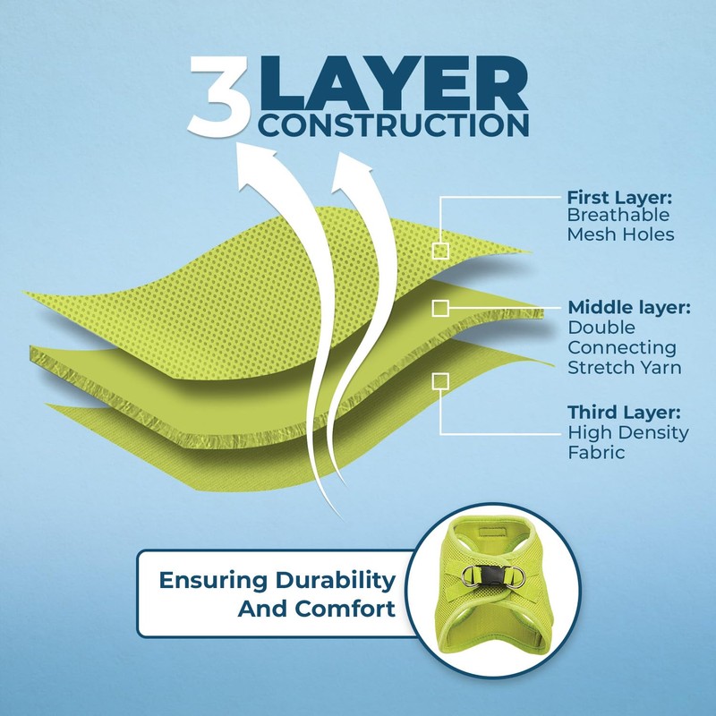 • ALL WEATHER MESH: Made with a soft, breathable air mesh, this lightweight pet harness is perfect for walks all year round.