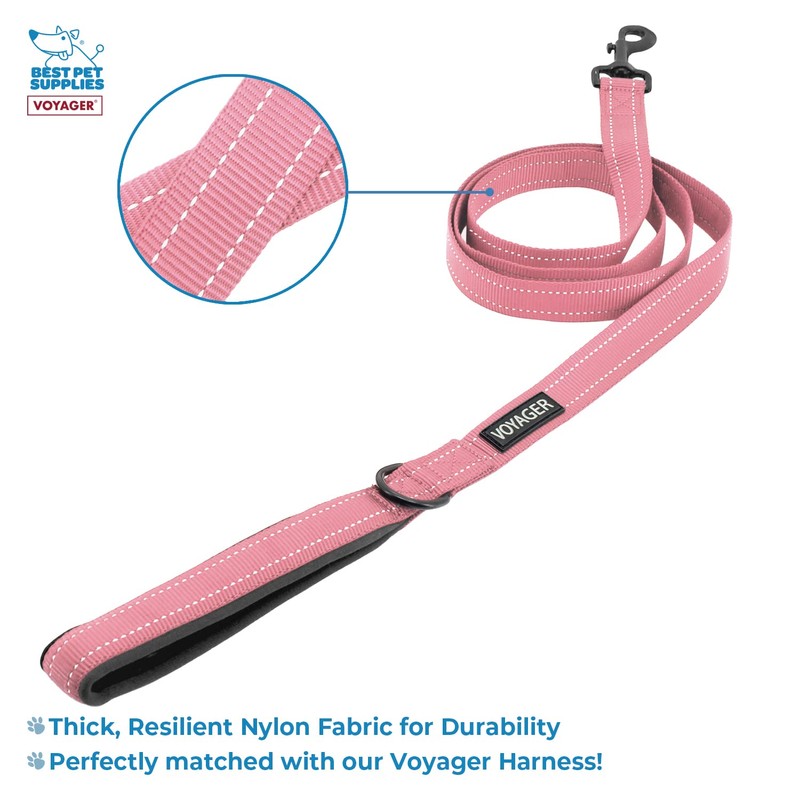 Voyager Step-in Lock Dog Harness w Reflective Dog Leash Combo Set with Neoprene Handle 5ft - Supports Small, Medium and Large Breed Puppies/Cats by Best Pet Supplies - Pink, XXS