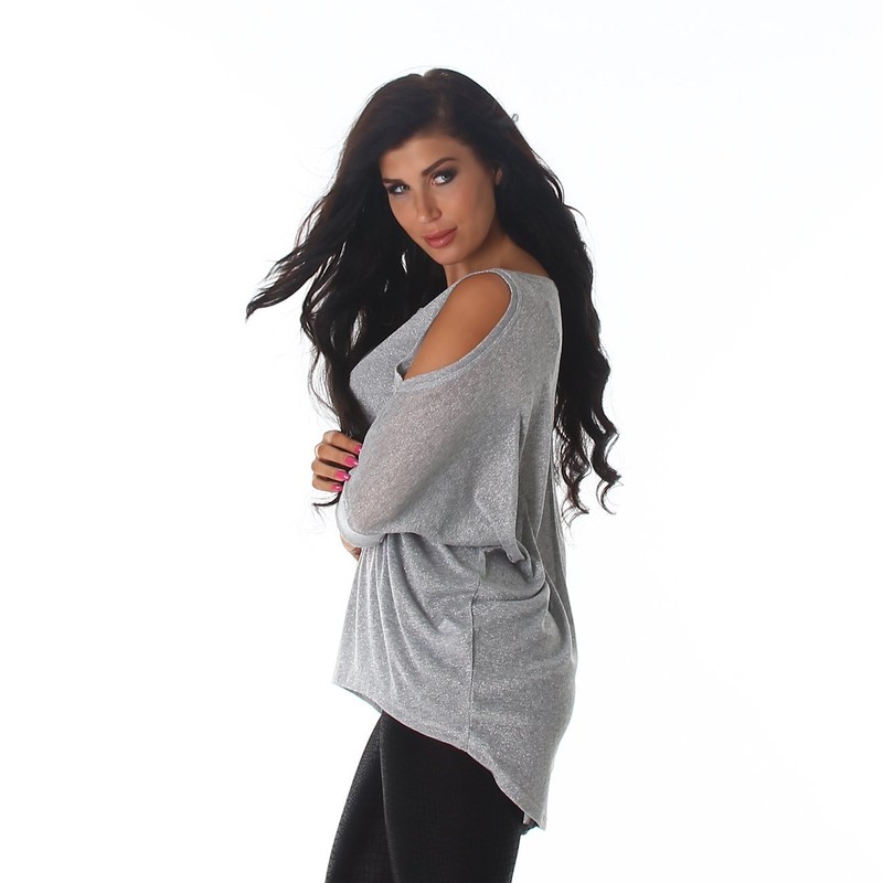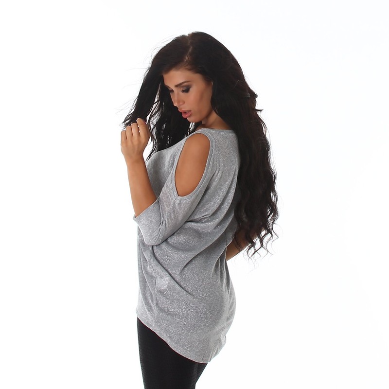 A fine and thin jumper for special moments. The main fabric has been complemented by metallic threads, which provide a subtle shine when hit by light. The material is really stretchy and perfectly emphasises your figure. At the top there is a long, thin tube which can be rolled or folded down as a turtleneck, depending on your preference. The sleeves have been stitched as raglan sleeves.