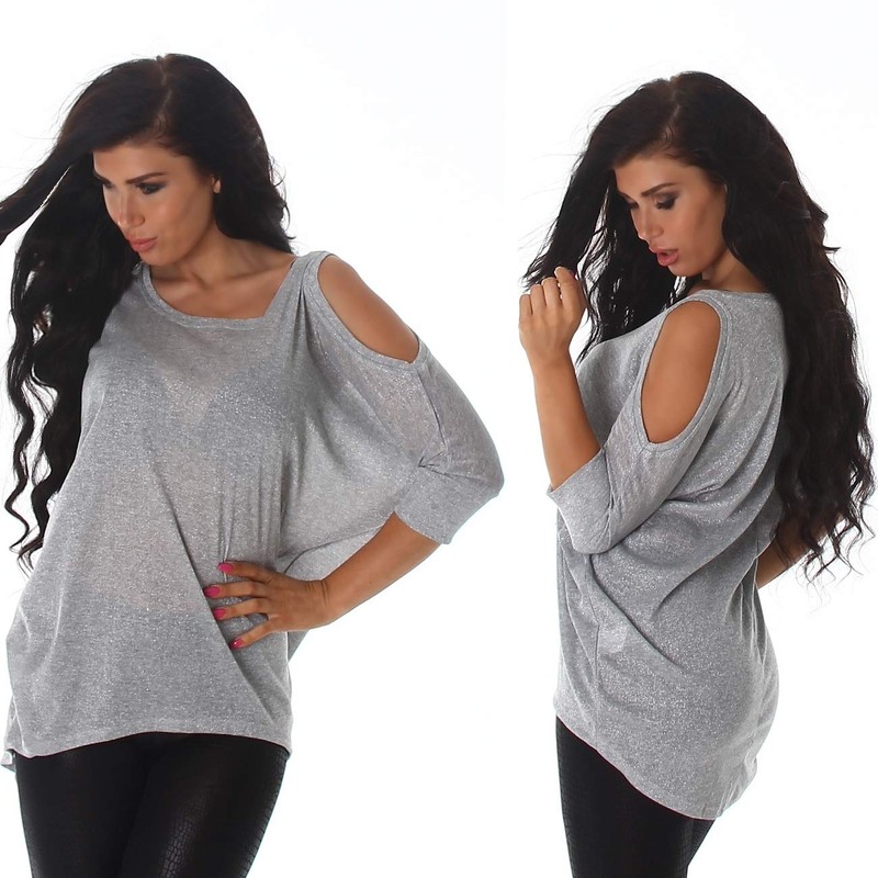 Voyelles Ladies’ Fine Knit, Long-Sleeved Jumper with Lamé Glitter Threads - T...