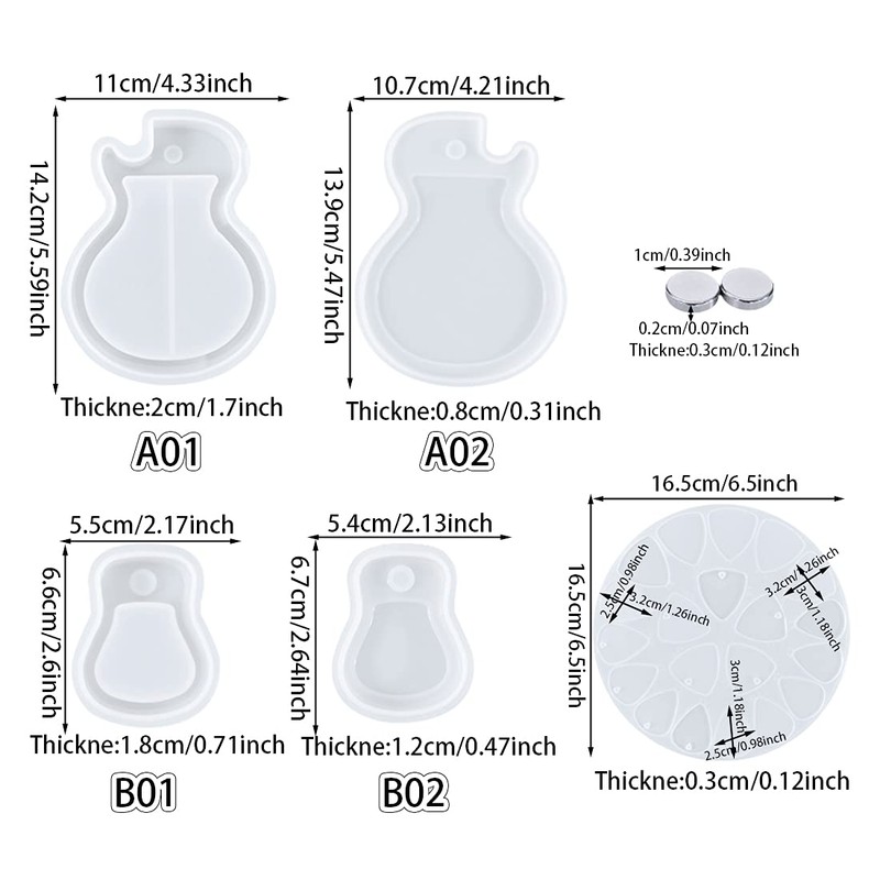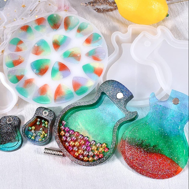 - ★ Guitar mold set: You will get 2 guitar storage box silicone resin molds (large and small), 1 guitar pick mold (20 slots with different shapes), and 4 solid magnets.