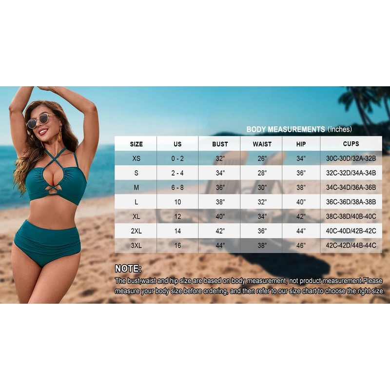 • 👙 Style: Two piece swimsuit for women include with sexy chest cutout top and high waisted bikini bottoms. Full coverage swimsuits for women can flatter your figure and show your charm and confidence, flattering and cute