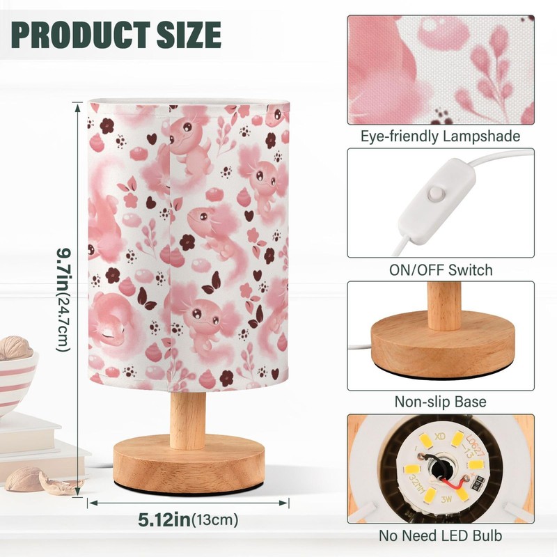 Vozoza Pink Axolotl LED Table Lamp with USB Port Night Light Bedroom Lamps for Nightstand Living Room Dorm Home Office Desk