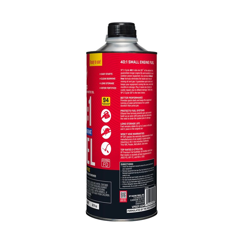 - VP 40:1 mix is a 94 octane, ethanol-free small engine premix fuel for 2-cycle engines that run outdoor power equipment