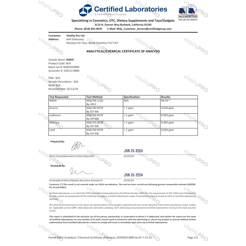 Vitality Pro's dedication to superior standards is evident in our strict manufacturing processes, third-party purity assessments, and adherence to ISO 9001:2015 quality certifications.