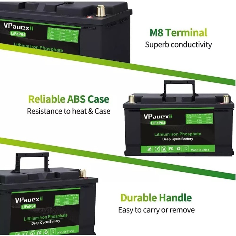 VPauexii 12V 100Ah Lithium Battery LiFePO4 Battery for Solar Pannel RV Boat