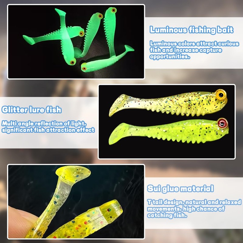 【Multifunktionales Angelwerkzeug】Jeder Köder wiegt 1,3 Gramm und ist 5 cm lang, sodass er für viele Fischarten geeignet ist. Dank seiner Leuchtfunktion zieht er auch nachts oder in dunkler Umgebung Fische an und erhöht so die Erfolgsquote beim Angeln.