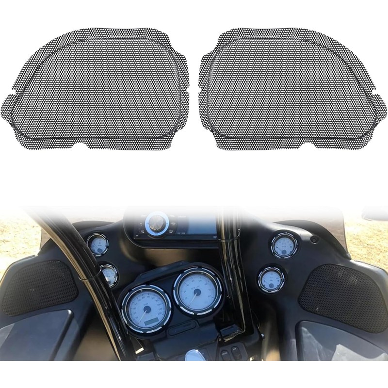 One Pair x Harley Road Glide Fairing Mesh Front Speaker Grills Cover.