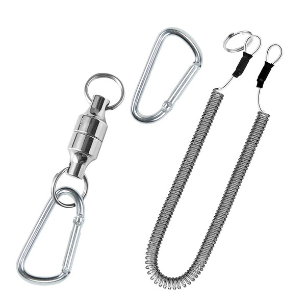 VQORAHUIX Magnetic Net Release Fly Fishing Net Retractor Magnetic Keychain, for Fly Fishing with Retractable Coiled Lanyard Carabiner