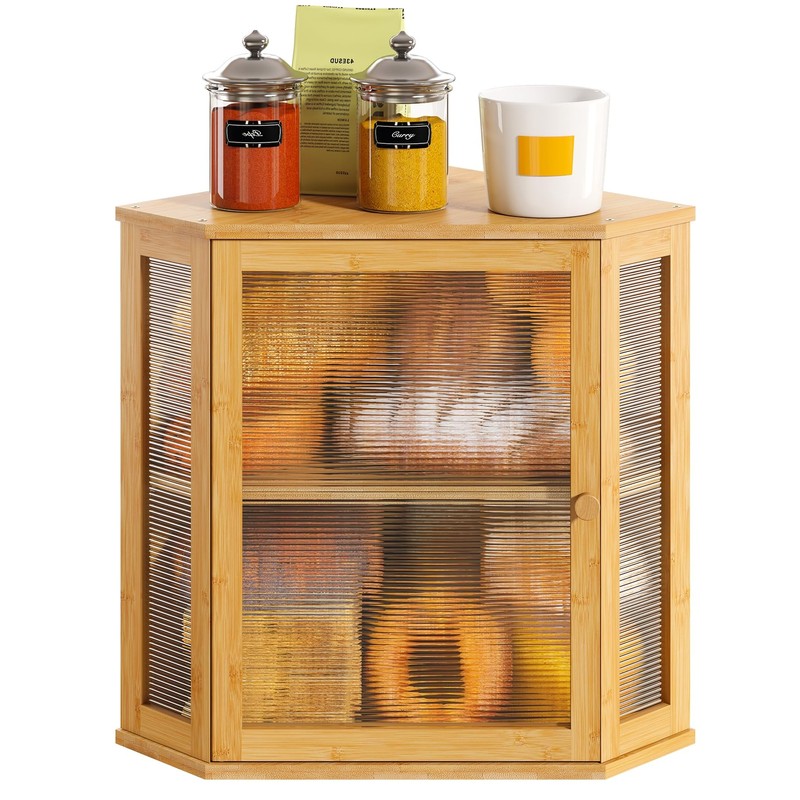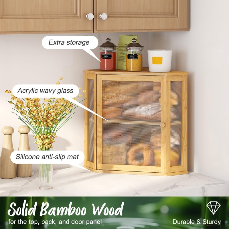 - [CORNER BREAD BOX] This bamboo wood bread box maximizes corner space, stores bread, and keeps countertops tidy