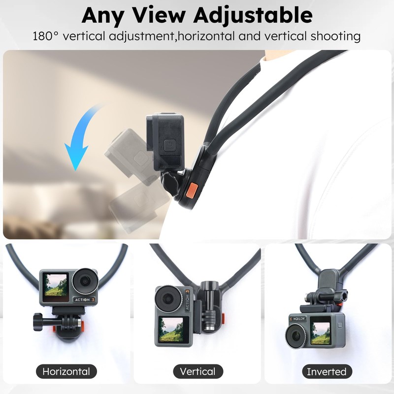 - ✅【Wide Compatibility】: The neck camera mount is compatible with many action cameras and smartphones (adapter required) and boasts compatibility with Gopro Hero 13 12 11 10 9 and other models. Additionally, the lightweight design weighs only 165g, minimizing the strain from long-term use.