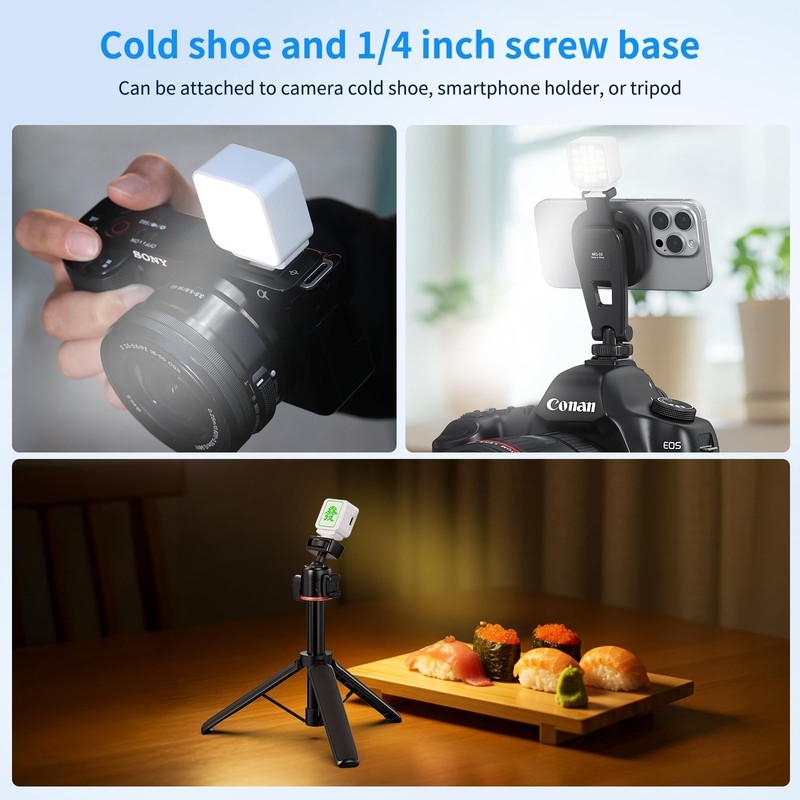 - Cold Shoe Compatibility: The cold shoe design ensures versatility; even when you're not using the DJI action camera, you can attach the light to any tripod or device with a cold shoe mount, making it ideal for selfies or general photography needs.