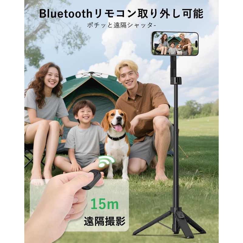 - The "Detachable Bluetooth Remote Control" MagSafe Stand comes with an easily removable Bluetooth remote. Wirelessly control selfies and group photos from up to 15m away. The remote control can be easily attached and removed from the main unit, so it can be held in hand only when needed. Create natural poses from your camera while shooting Vlog or streaming live