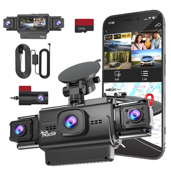 VROAVIE R4-RD 360 Degree 4-Channel Radar Dash Cam Game-Changing Radar Monitoring Technology (Patented Technology) R4-RD dash cam redefines parking security with the industry's first active radar detection system. Unlike traditional dash cams that rely solely on G-sensors (which only activate after collision) or grainy time-lapse recording, our radar-powered dash cam provides: 1.Proactive 360 degree Protection Continuously scans a 3-5 meter radius around your vehicle using millimeter-wave radar. Starts recording before physical impact occurs when detecting approaching objects. Eliminates blind spots of conventional motion-activated dash cams. 2.Ultra-Efficient Power Management Radar operates at just 0.09W (versus 2.5W for full recording mode). Dash cam stays in sleep mode until radar triggers emergency recording. Provides 7+ days of continuous parking surveillance without draining your car battery. 360 Degree 4-Channel Dash Cam Coverage With four 170° lenses, this dash cam delivers 200% wider coverage than standard front/rear dash cams. Never miss evidence of side collisions, parking lot dings, or hit-and-run incidents again. OBD-Powered Dash Cam Convenience The included 11.5ft OBD cable lets you install this dash cam in minutes without complex hardwiring. Enjoy seamless transition between driving mode and radar-protected parking mode. Dual-Band WiFi Dash Cam Connectivity Access your dash cam's footage anytime via 5GHz/2.4GHz WiFi. The free mobile app allows: 1.Live view from all four dash cam channels 2.Instant download/share of recordings 3.Customizable dash cam settings Smart Dash Cam Recording Features 1.Auto loop recording with emergency lock (includes 128GB card) 2.Time/date stamped footage for legal evidence Professional-Grade Night Vision Dash Cam The dash cam's F1.55 aperture lens, 8 infrared LEDs, and WDR technology deliver license plate-readable footage in: 1.Pitch-black parking garages 2.Heavy rain/snow conditions 3.Complete darkness with 0 ambient light Modular GPS for Your Dash Cam The removable GPS module provides: 1.1-meter accuracy speed/route tracking 2.Maps integration via desktop software 3.Privacy control - only activate when needed