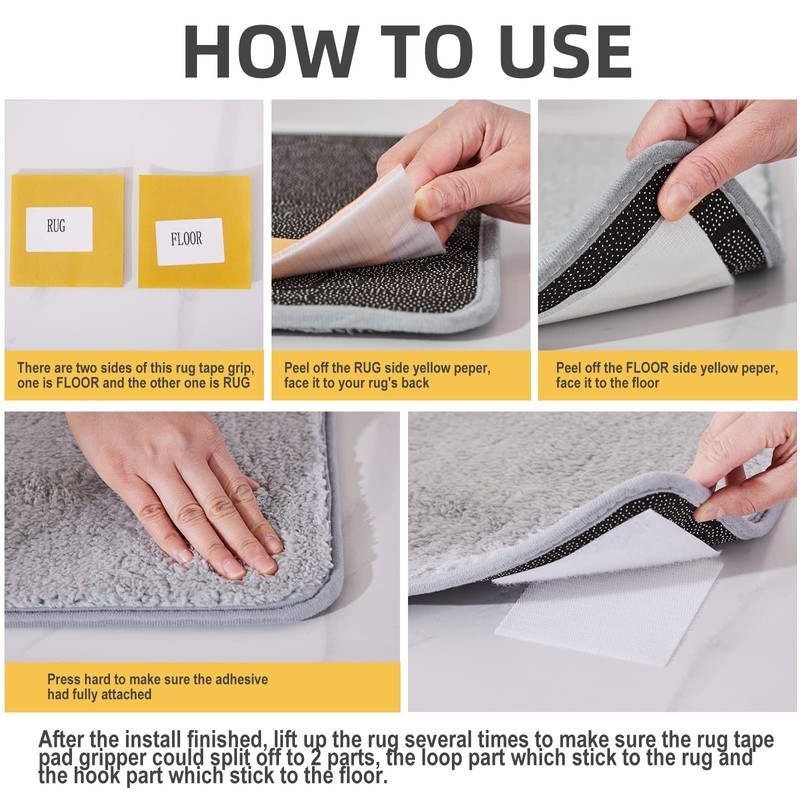 - 【Washable & Cuttable】: Easy to clean, just peel off the rug with the Loop part adhesive pad, throw it to the washing machine and wash, dry the rug, then tape it back with the hook part rug tape pads gripper ! Also it can be cut into smaller parts if the rug pads is too large.