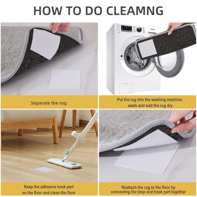 - 【Easy to Clean】: Not only solve the washing issue, you may caring about to clean the floor, no worry, this product will relief you from it, just reattach the rug, leave the Hook part tape on the floor and do the clean. Super easy!