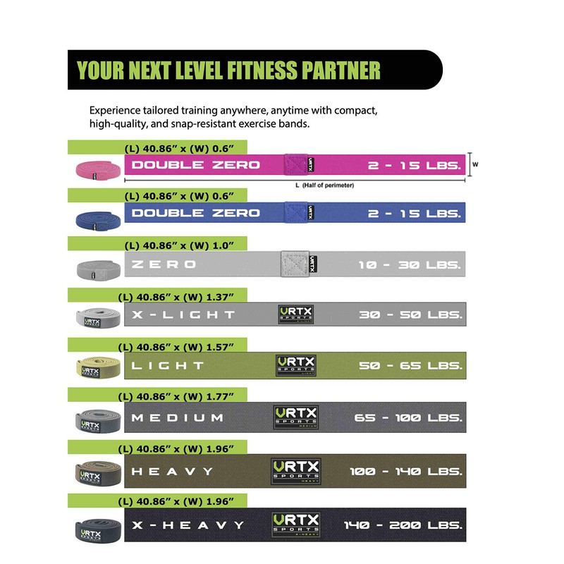 - ✅ ALL-AROUND STANDARD PACK Train according to your style - from light stretching to heavy workouts with the VRTX Mesh Standard 4-Piece Bundle that comes with the Zero, Light, Medium, and Heavy Bands.