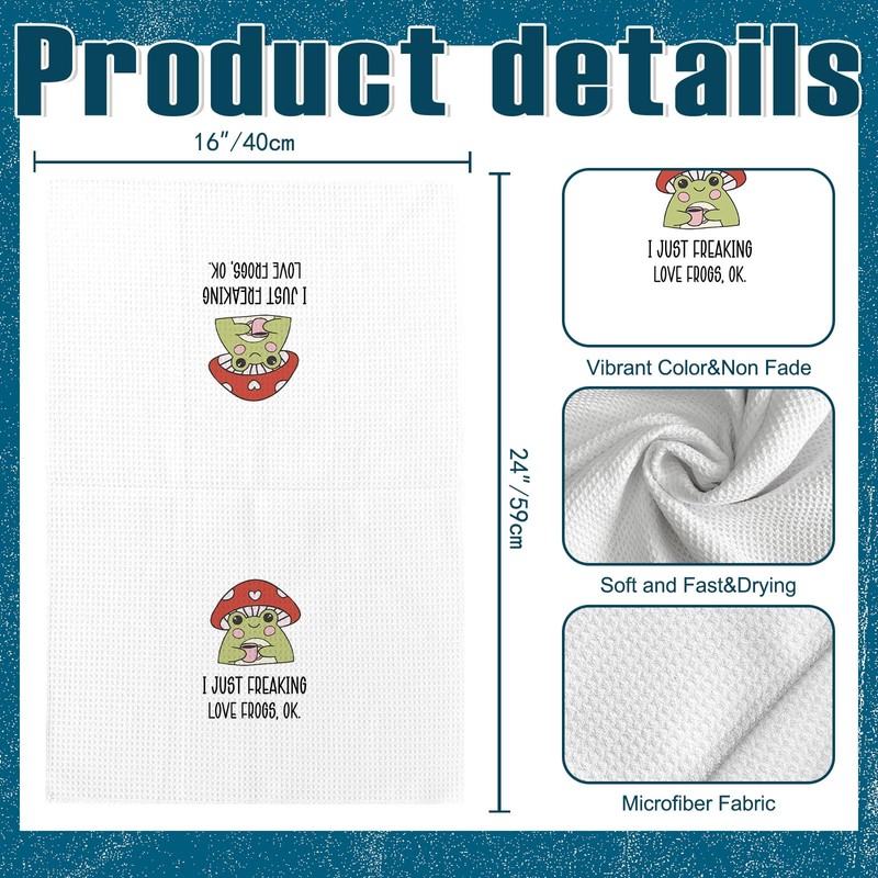 VRW I Just Freaking Love Frogs Kitchen Towels and Dishcloths, Frog Gifts, Frog Bathroom Decor, Mushroom Gifts, Mushroom Frog Drying Cloth Hand Towels for Girls Bathroom Kitchen Decor, 16×24 Inches