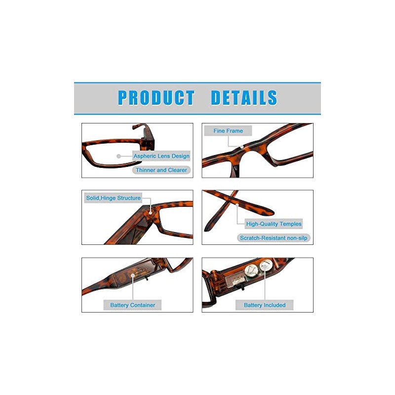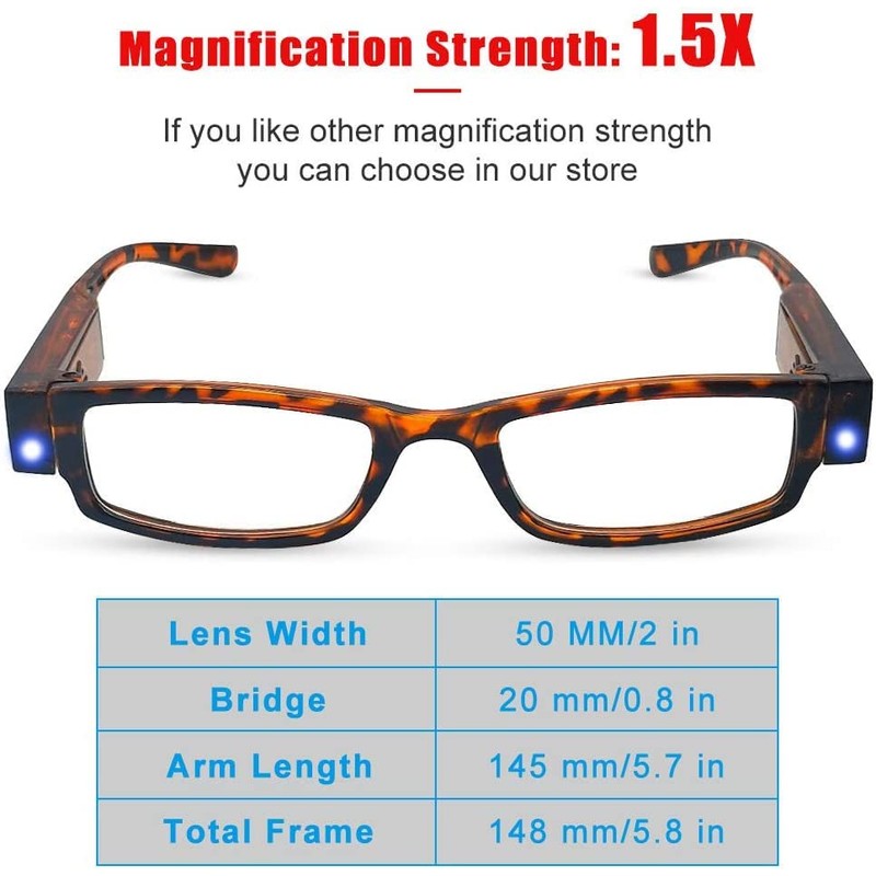 vs eyewear 12 Pcs Reading Glasses Led Lighted Readers in Sturdy Rectangular Plastic Frame (Tortoise, 1.5, multiplier_x)