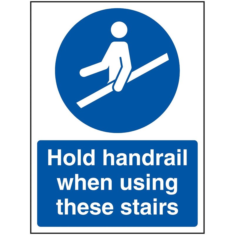 VSafety Hold Handrail When Using These Treairs Sign - 150mm x 200mm - 1mm Rigid Plastic