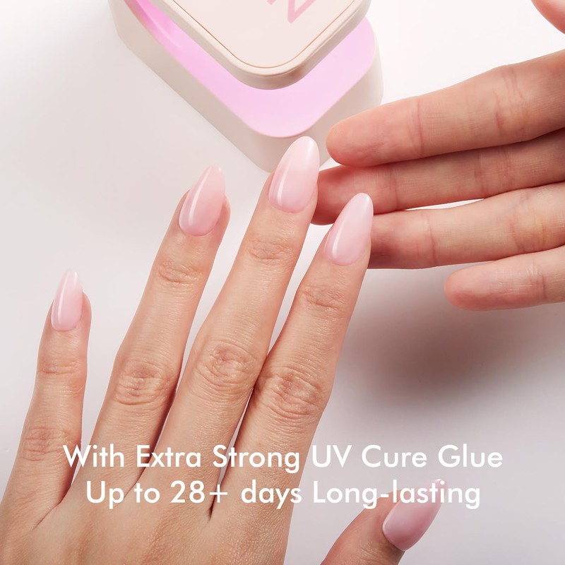 If you've been curious about press-on nails but worry that regular nail glue doesn't hold up well for daily use, our UV Cure Nails Series is the perfect solution! Our UV Cure Glue Nails sets to a quality that rivals salon nails, providing a strong and stable hold. Plus, we also include nail glue that doesn’t require a lamp, so you can easily customize your wear time based on your needs. Each nail tip is crafted using the same meticulous techniques as salon-quality nails, utilizing materials that are slim, durable, and comfortably molded to fit your natural nail shape without breaking.