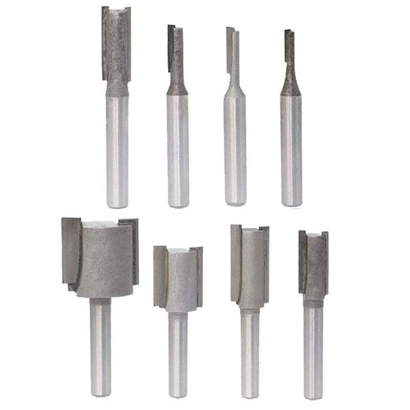 - Size: 8PCS Straight Router Bit; Cutting diameters: 22.2/15.9/12.7/9.52/7.96/4.76/3.96/3.17mm; Shank Diameter: 6.35mm (1/4").