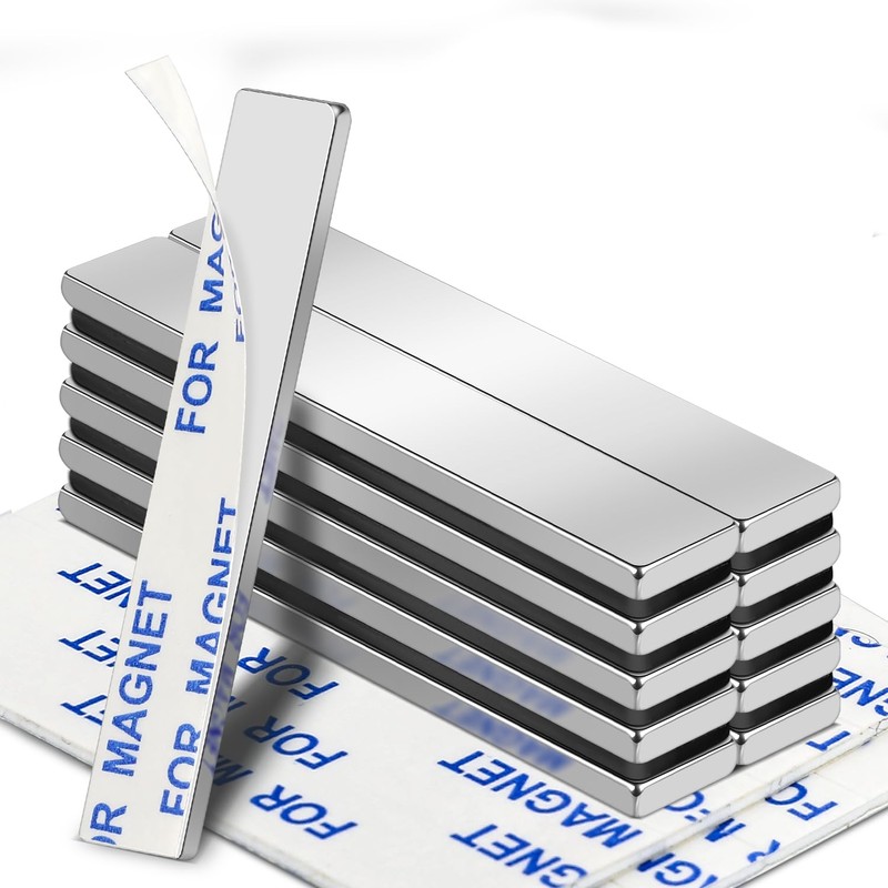 VSKIZ Powerful Neodymium Magnets, 10pcs Heavy Duty Rare Earth Magnets with Double-Sided Adhesive, Strong Rectangular Magnetic Bar for Crafts, Tool Storage, Science, Office, Kitchen - 60x10x3mm