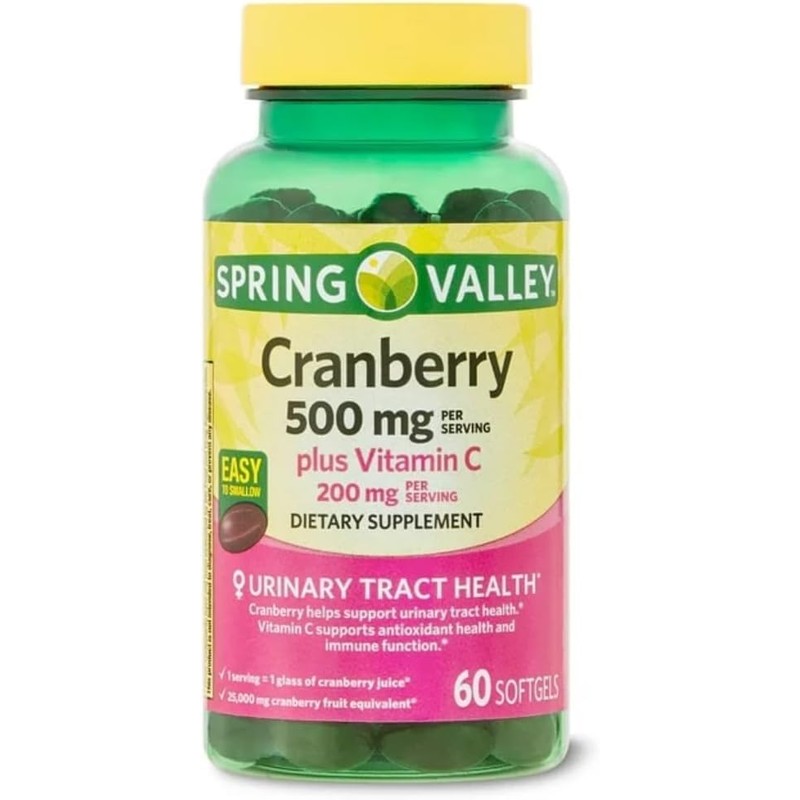 - Cranberry has been used widely for several decades for the prevention and treatment of urinary tract infections (UTIs) No gluten, no artificial colors, no high fructose corn syrup, no artificial flavor, no preservatives, no sweetener, no soy, no peanut, no dairy 60 easy to swallow cranberry softgels per bottle 1 Serving = 1 glass of cranberry juice 25,000 mg cranberry fruit equivalent 500 mg per serving of cranberry plus 200 mg per serving of Vitamin C