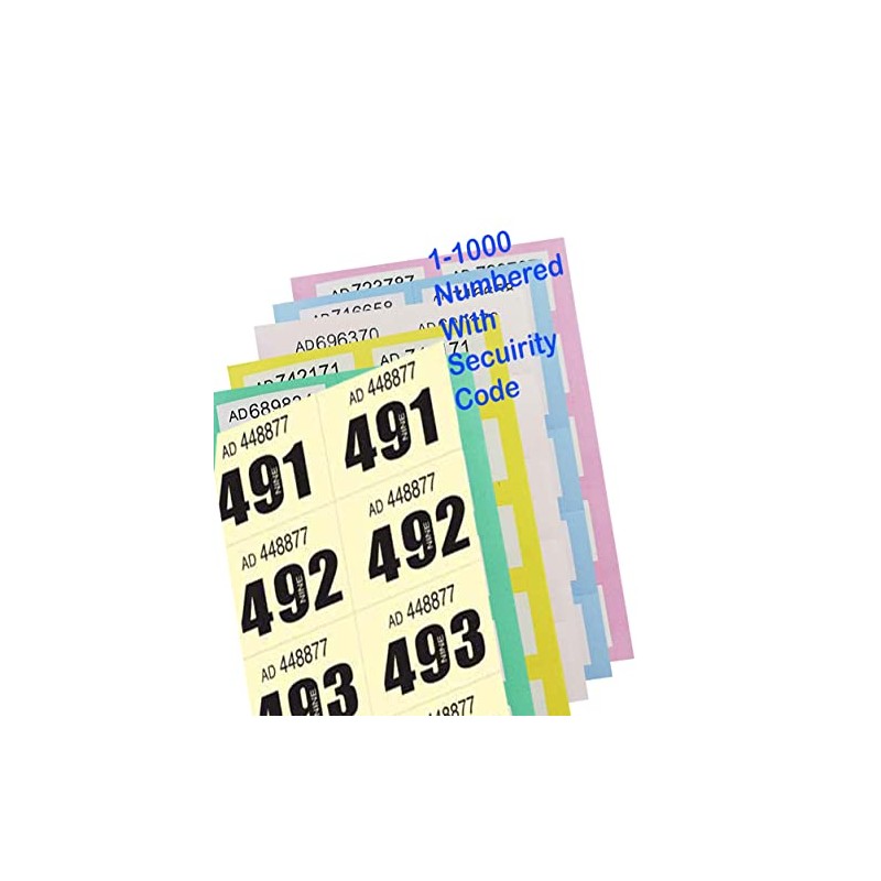 Vsorce4u 1-1000 Raffle Tickets - Assorted Colours Cloakroom Tickets Book Jumbo Numbers, Security Coded Sheets - Tombola Numbered Tickets for Home, Office, School