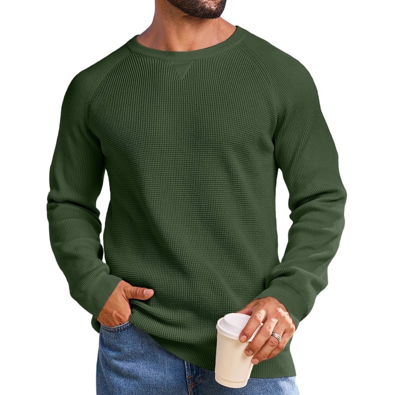 Vssjavun Men's Waffle Knit Sweater: Comfort & Style Redefined Experience ultimate comfort and timeless style with our crewneck pullover. Crafted from premium, soft knitted fabric, it's exceptionally skin-friendly, warm, and comfortable for all-day wear in cooler weather. Featuring a classic yet distinctive design: Signature Waffle Texture: Adds visual interest and depth. Raglan Sleeves & Ribbed Accents: (Neckline, cuffs, hem) ensure a flattering fit and modern silhouette. Subtle Fashion Detail: The delicate triangular design below the crew neck adds a unique charm. Versatility is effortless: Casual Chic: Pair instantly with jeans or casual pants. Smart Elevation: Layer over a shirt for a more polished look. Effortless Sophistication: Achieve a put-together style whether worn layered or simple. Perfect for diverse occasions: Ideal for daily wear, casual outings, vacations, and office settings during fall and winter. A thoughtful gift: Excellent choice for fathers, husbands, brothers, sons, boyfriends, or friends on Christmas, Thanksgiving, birthdays, and more. Care Instructions: For best results, hand wash or machine wash cold (gentle cycle). Wash light and dark colors separately. Do not bleach. Always check our size chart before ordering for the perfect fit!