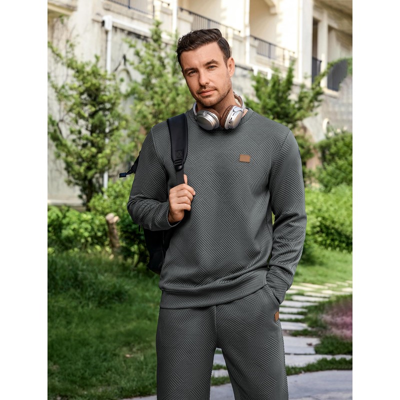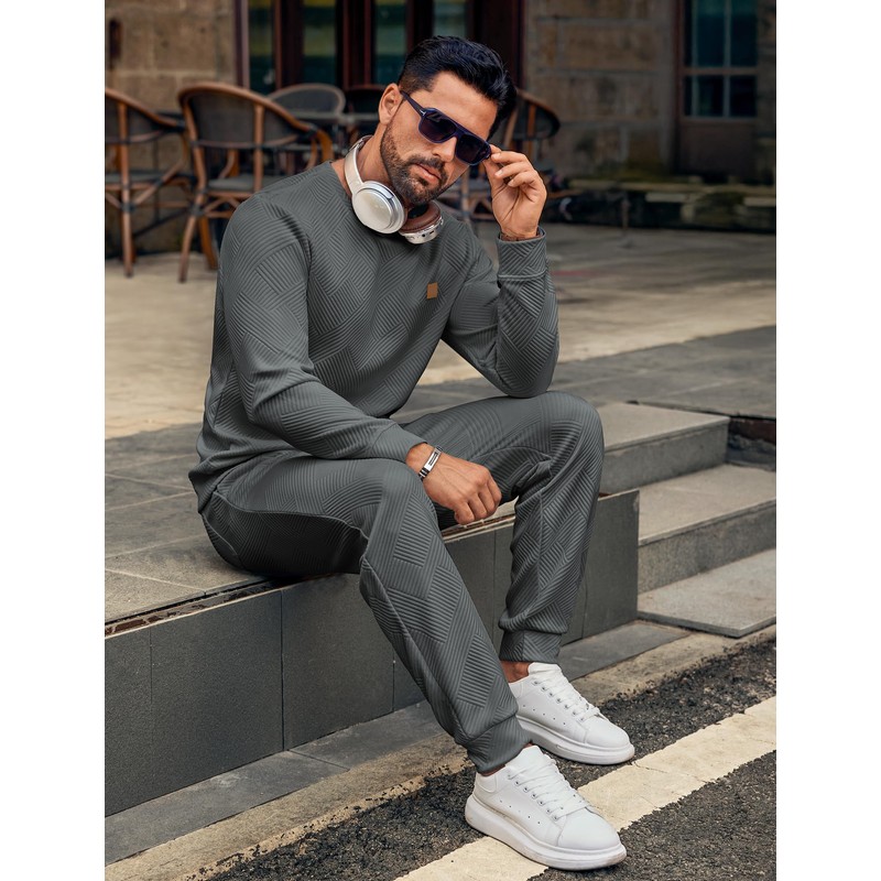 - Premium Textured Fabric: Crafted from soft, lightweight jacquard textured fabric, this men’s 2 piece sweatsuit delivers superior comfort with a stylish visual appeal. Perfect for year-round wear, it keeps you looking sharp whether lounging or on the move.