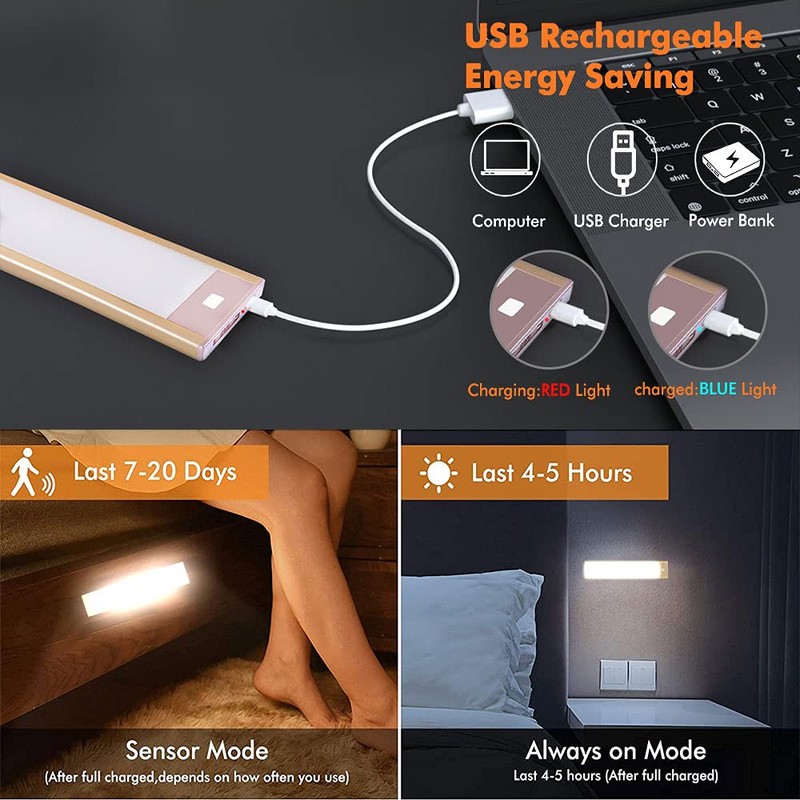 - PIR Motion Sensor: Sensitive, it can sense and light up within 120° of the lamp and 10ft. With 1100mAh rechargeable battery inside.No need Extra AA/AAA Battery,Wireless.It can be fixed in cabinets, bookshelves for lighting and it's a Light Fixtures for a small work area instead of ceiling light