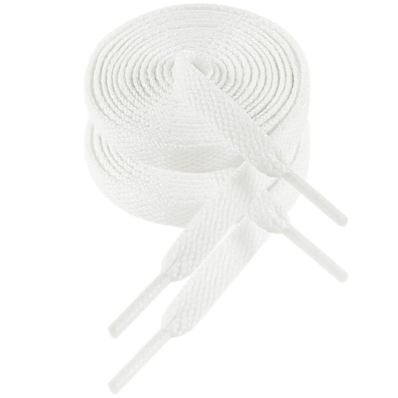 - SHOE STRINGS STYLE: Approximately 8mm wide flat white sneakers shoelaces - Polyester - Includes 2 pairs (4 laces) flat white shoestrings.