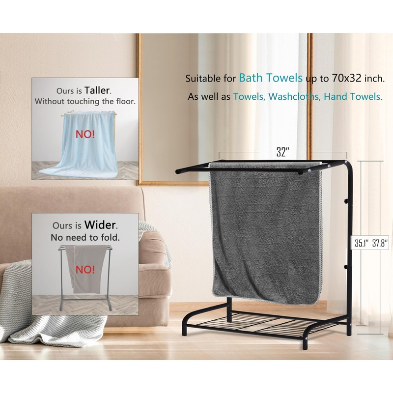VSUINGO Large Freestanding Towel Rack, 32" L x 37.8" H for Oversized Bath Tow...