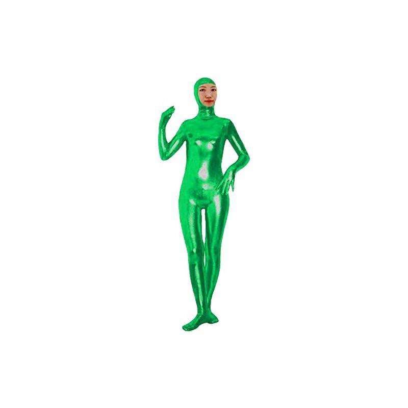 VSVO Shiny Spandex Open Face Full Bodysuit Zentai Suit for Adults and Children (Large, Green)