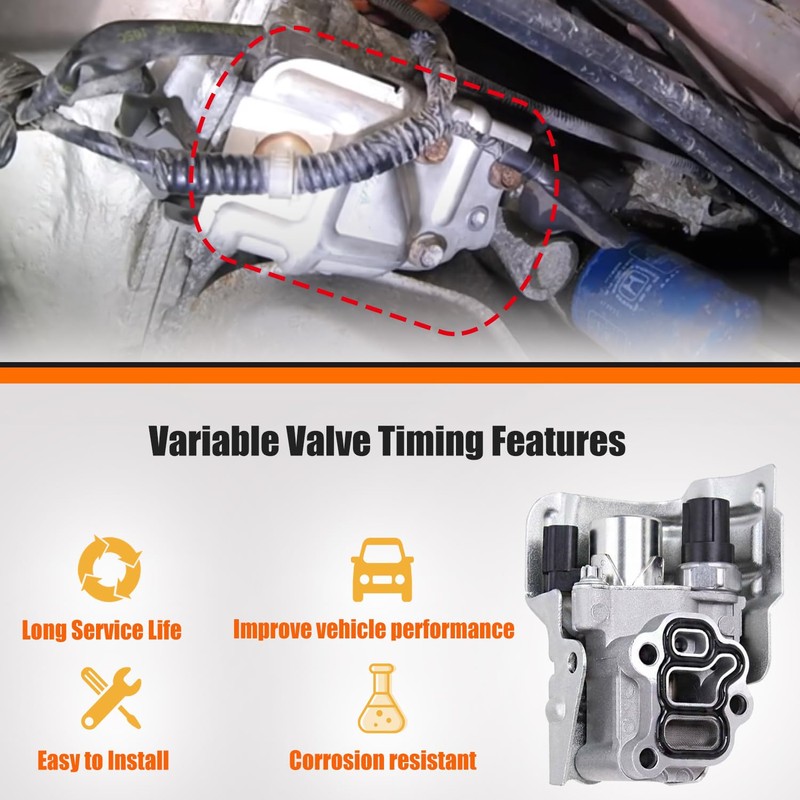 • 【Functions and Power】The Variable Valve Timing Oil Control Intake Solenoid improve the engine operating efficiency, and reduce the engine load, thereby effectively reducing nitrogen oxide emissions, reducing knocking, and prolonging Engine component service life.This adds to fuel economy and also aids in boosting horsepower.