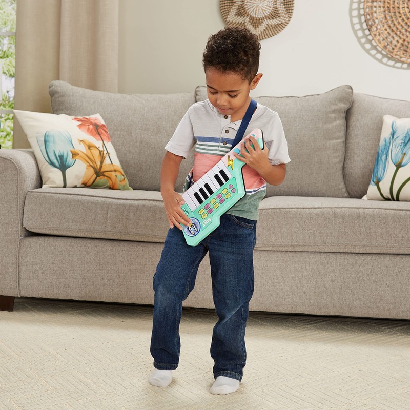 • Make your own romance music using a replica of Bluey’s keytar from the show or play along to 10 built-in melodies including the Bluey theme