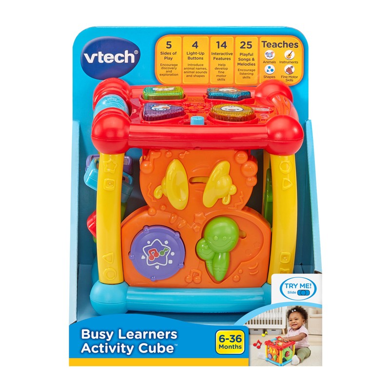 VTech Busy Learners Cubeta de Actividades, Busy Learners, Regular, 6.22 x 6.22 x 6.46 Inches
