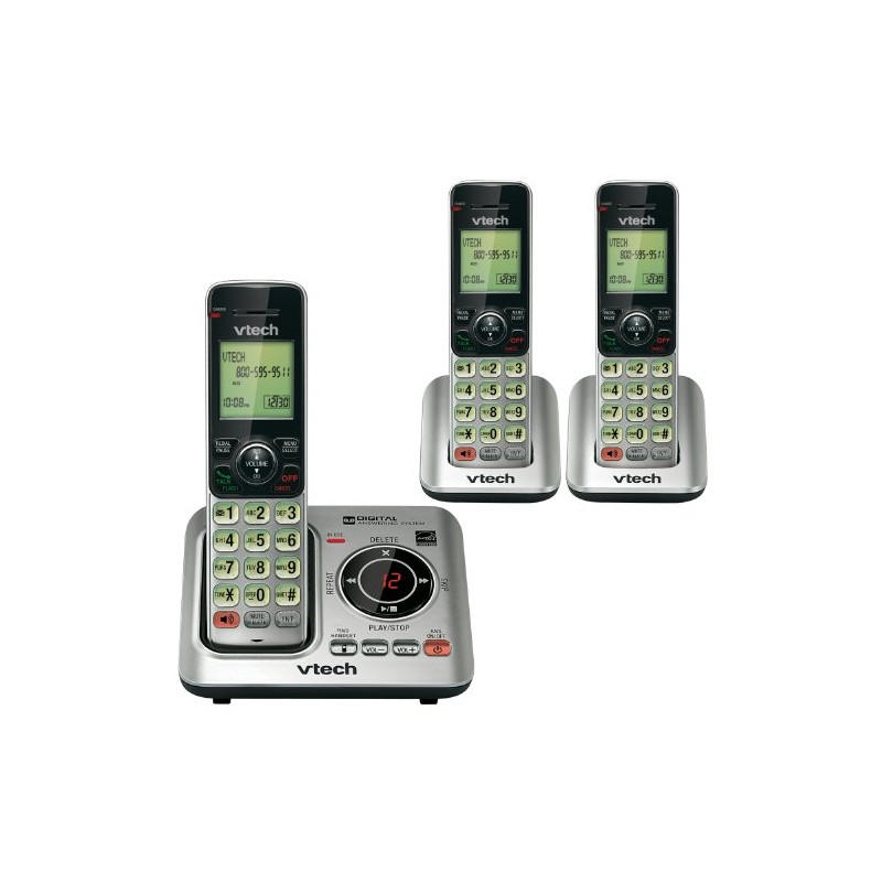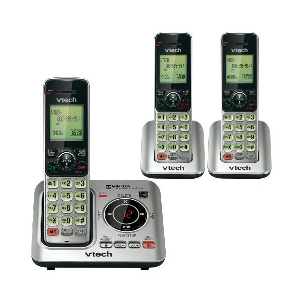 VTech CS6629-3 DECT 6.0 Expandable Cordless Phone with Answering System and Caller ID/Call Waiting, Silver with 3 Handsets, 6.9" x 6.7" x 5.2"