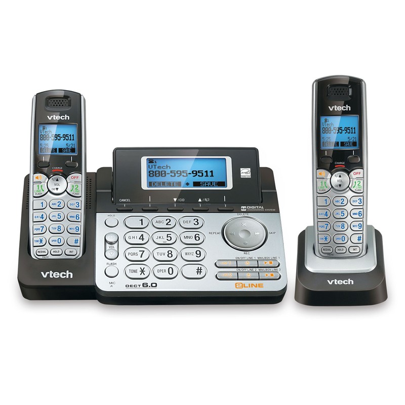 VTech DS6151-2 2 Handset 2-Line Cordless Phone System for Home or Small Business with Digital Answering System & Mailbox on each line, Silver