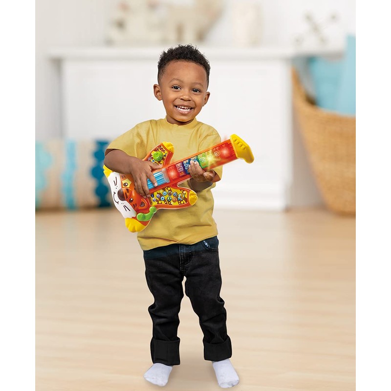 - SAFARI SOUNDS GUITAR: This rockin' tiger guitar can't wait to jam with your little rocker! Kids will love to get creative with this fun animal toy guitar as they enjoy playing with 3 guitar sounds; acoustic, clean electric and distorted electric
