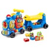 • This VTech sit-to-stand ultimate alphabet train is an online exclusive colored in Blue. Push toy is designed to grow with your child; the toy train can be used as a floor toy, a ride on that also transforms into a baby Walker or a pull toy wagon they can fill with toys