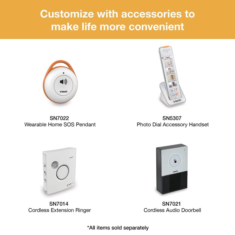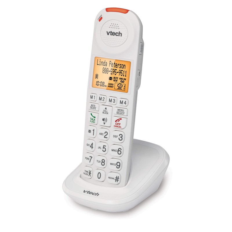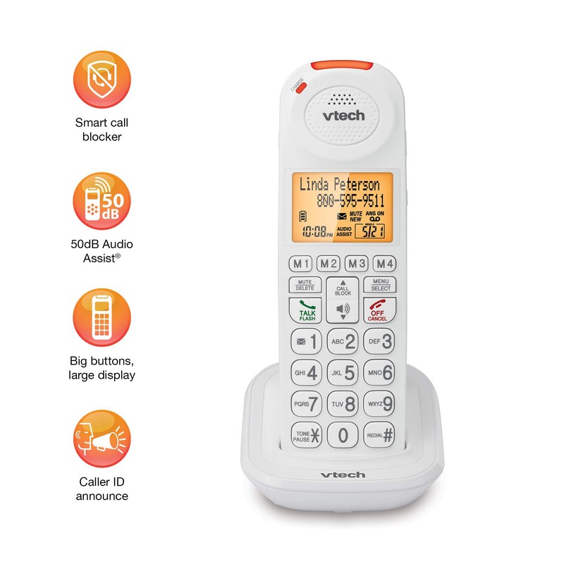With features that make calls easy to dial and hear, the VTech SN5107 amplified accessory handset with big buttons and display is a senior-friendly phone system boasting big buttons, 50dB audio assist and smart call Blocker. Increase the volume of incoming sound by up to 50 decibels to make conversations easier to hear and understand on this amplified cordless phone. The extra-loud 90dB ringer makes it easy to hear incoming calls throughout your home. Plus, a light on the top of the senior-friendly handset flashes when the telephone rings, signaling an incoming call. This feature is especially helpful for those who are hearing Impaired. With the VTech SN5107 amplified accessory handset with big buttons and display, you can say goodbye to unwanted calls. Robocalls on your landline are automatically blocked from ever ringing througheven the first time thanks to the smart call Blocker. You can also permanently blacklist Up to 1, 000 numbers with one touch.