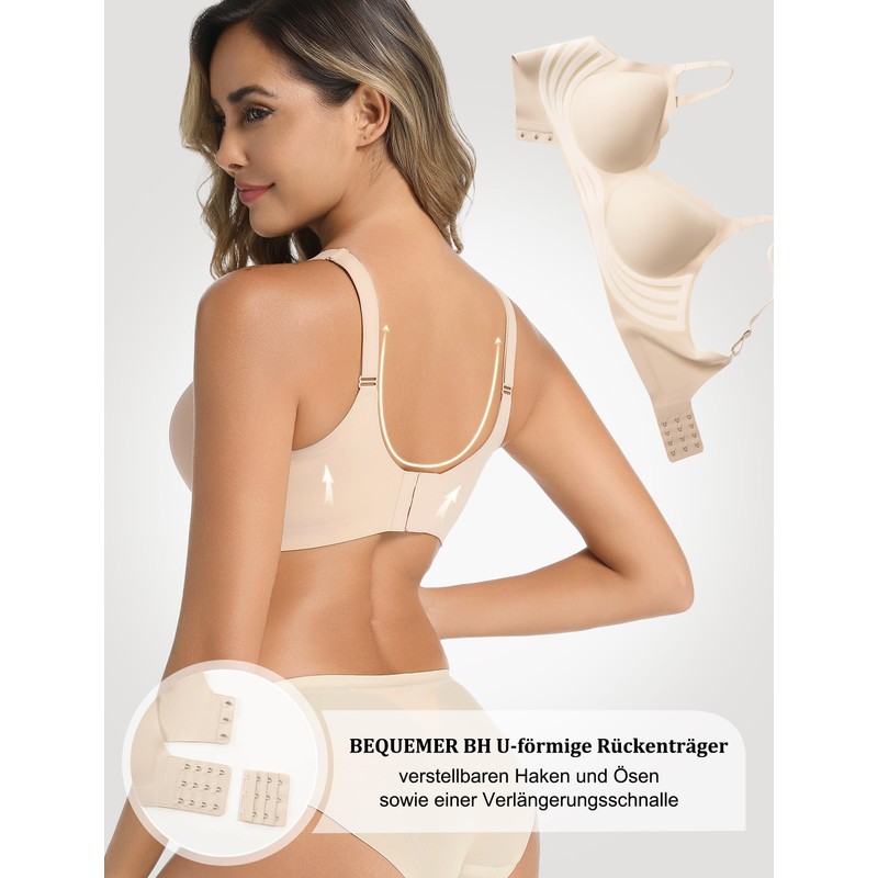 - Adjustable wide straps and adjustable back button - With adjustable hooks and eyelets as well as a bra extension that can be adjusted to your shape for maximum comfort. Highly elastic and wider straps relieve the shoulders without squeezing them. The breathable and seamless U-back design remains invisible under any clothing. Our t-shirt relief bra without underwire padded has regular sizes as well as plus sizes available to meet different body shapes.